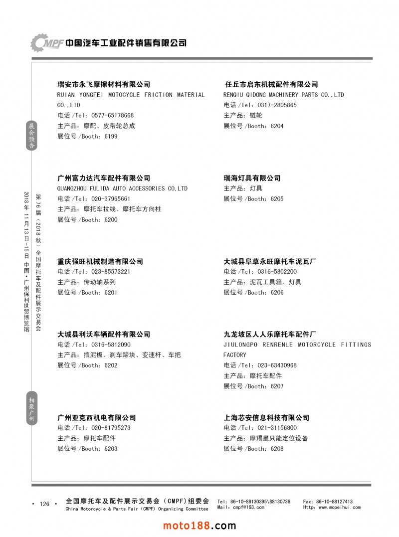 內126 第75屆(2018春)全國摩托車及配件展示交易會-重慶站參展企業信息