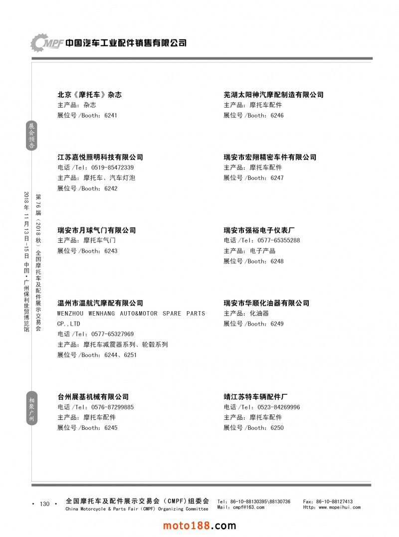 內130 第75屆(2018春)全國摩托車及配件展示交易會-重慶站參展企業信息