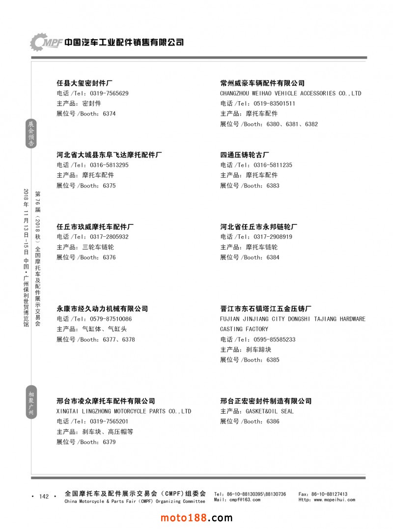 內142 第75屆(2018春)全國摩托車及配件展示交易會-重慶站參展企業信息
