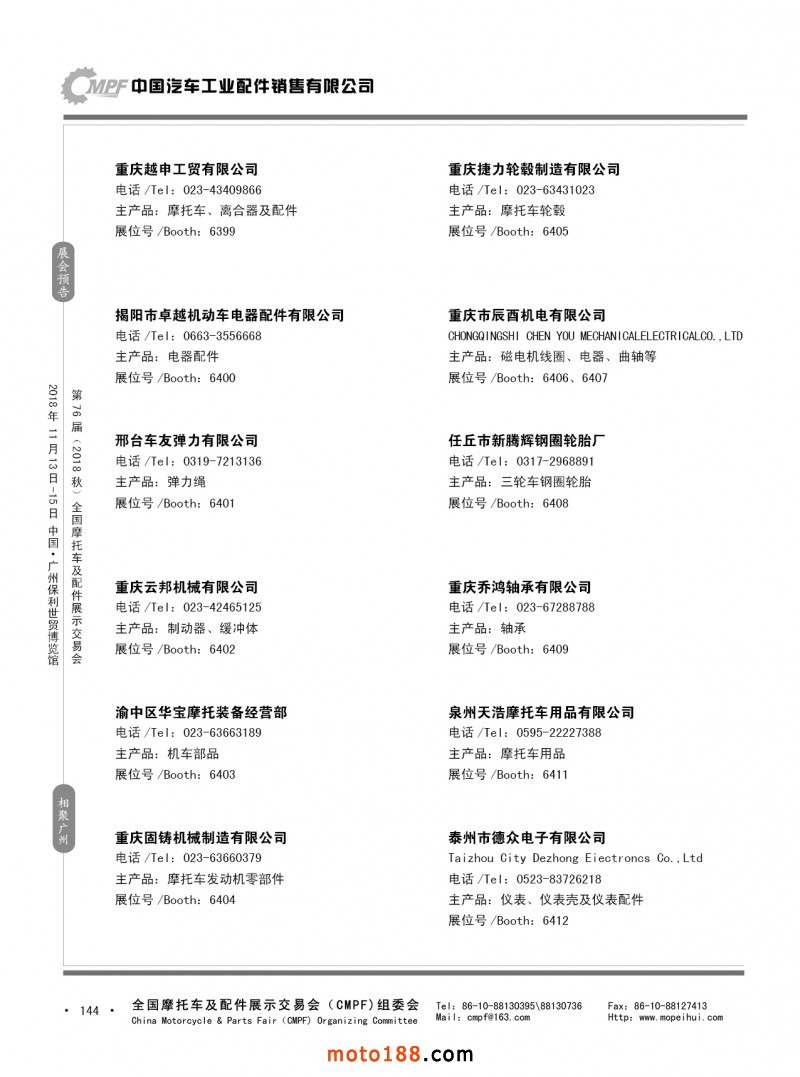內144 第75屆(2018春)全國摩托車及配件展示交易會-重慶站參展企業信息