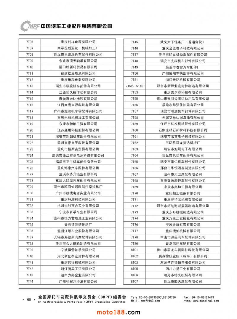 內(nèi)60 第75屆(2018春)全國摩托車及配件展示交易會(huì)-重慶站參展單位名錄