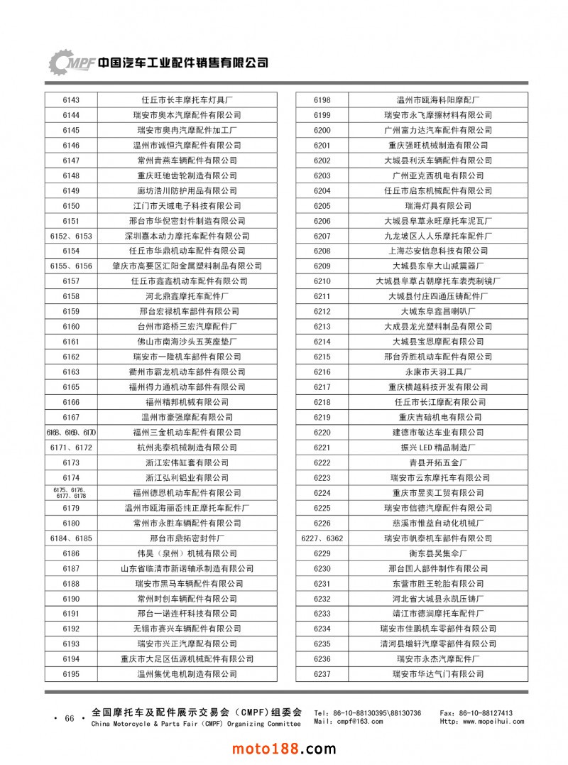 內66 第75屆(2018春)全國摩托車及配件展示交易會-重慶站參展單位名錄