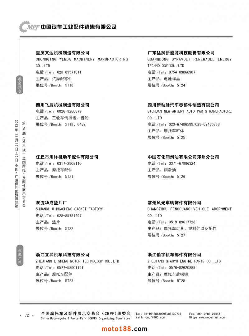 內72 第75屆(2018春)全國摩托車及配件展示交易會-重慶站參展企業信息