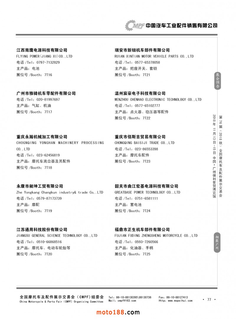 內77 第75屆(2018春)全國摩托車及配件展示交易會-重慶站參展企業信息