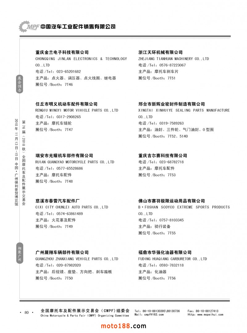 內80 第75屆(2018春)全國摩托車及配件展示交易會-重慶站參展企業信息