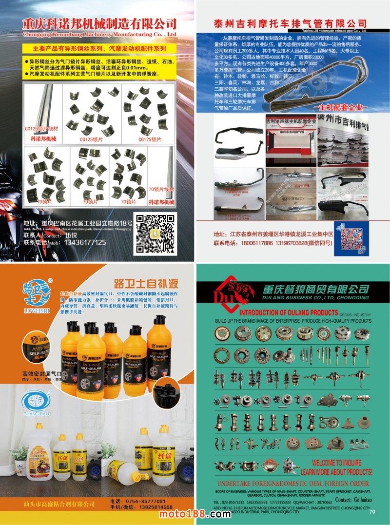 2018.5月《摩托車/電動車與配件》雜志,歡迎大家閱讀日期:2018-04-25 點擊:1894 查看原圖 全部展開![]() ![]() ![]() 內 79 重慶科諾邦機械制造有限公司