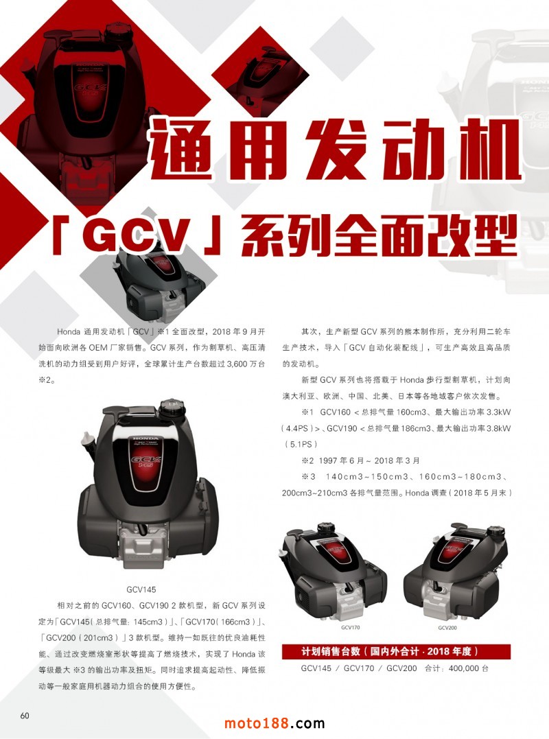內60 通用發動機[GCV]系列全面改型
