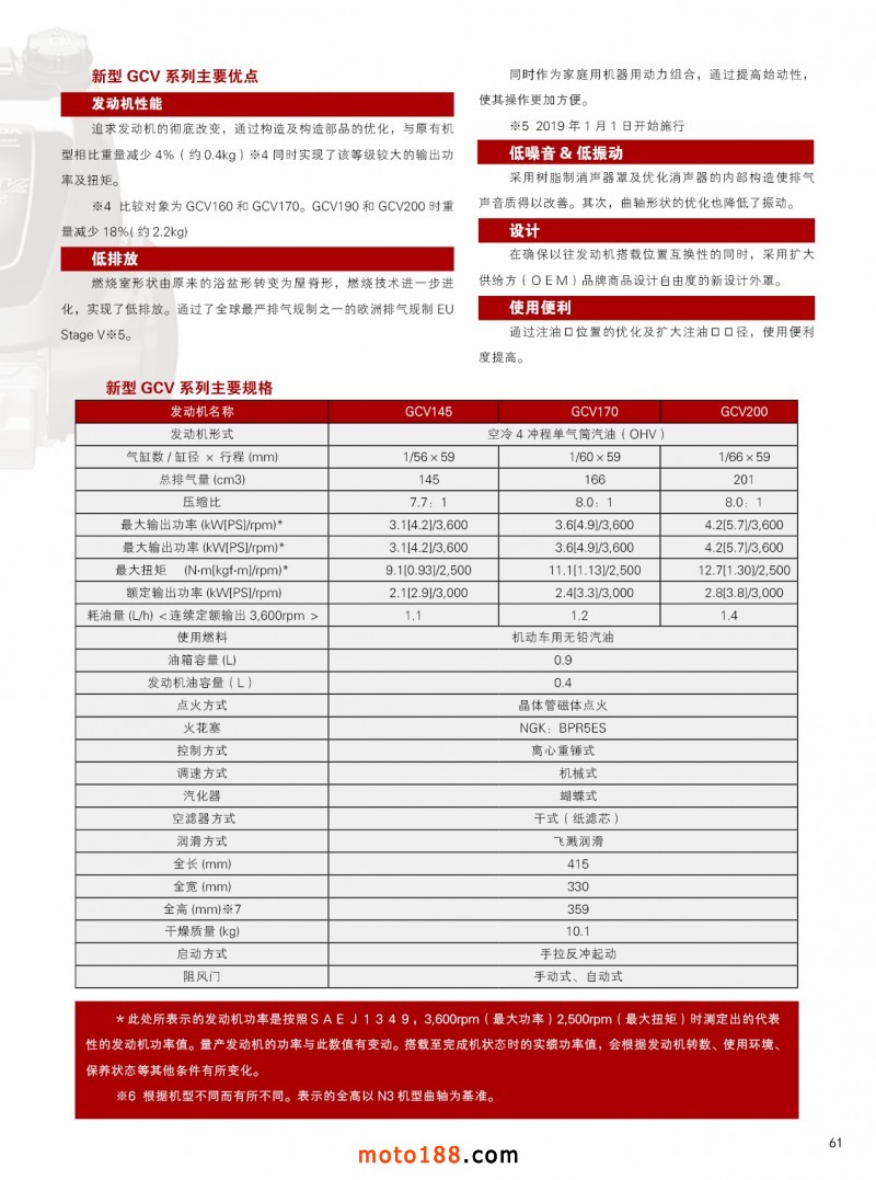內61 通用發動機[GCV]系列全面改型