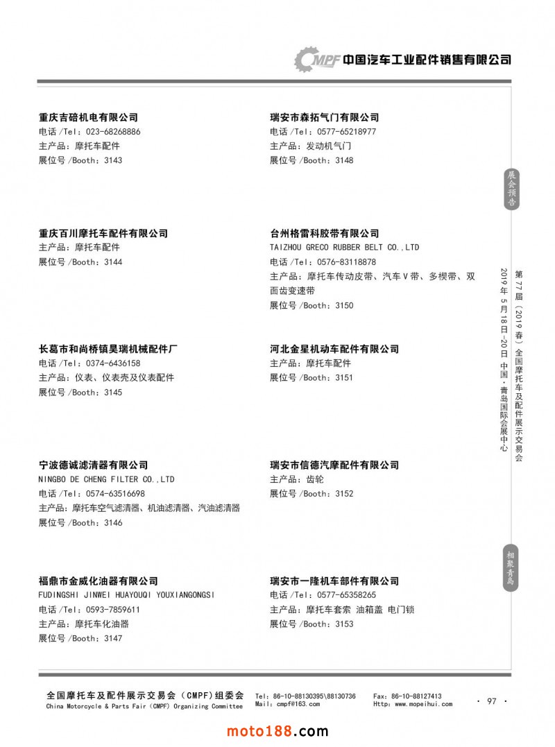 內97 第76屆(2018秋)全國摩托車及配件展示交易會-廣州站參展企業信息