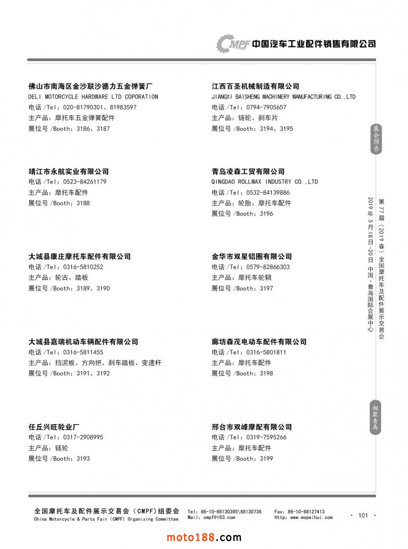 內101 第76屆(2018秋)全國摩托車及配件展示交易會-廣州站參展企業信息