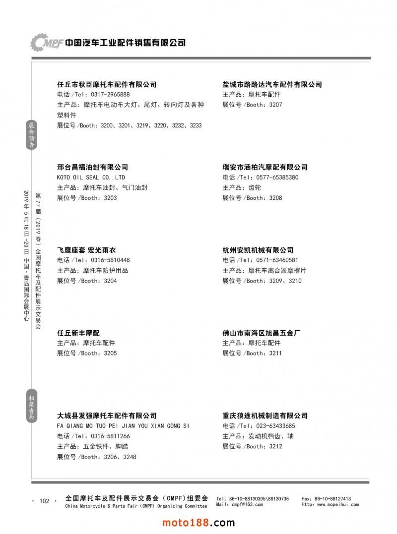 內102 第76屆(2018秋)全國摩托車及配件展示交易會-廣州站參展企業信息
