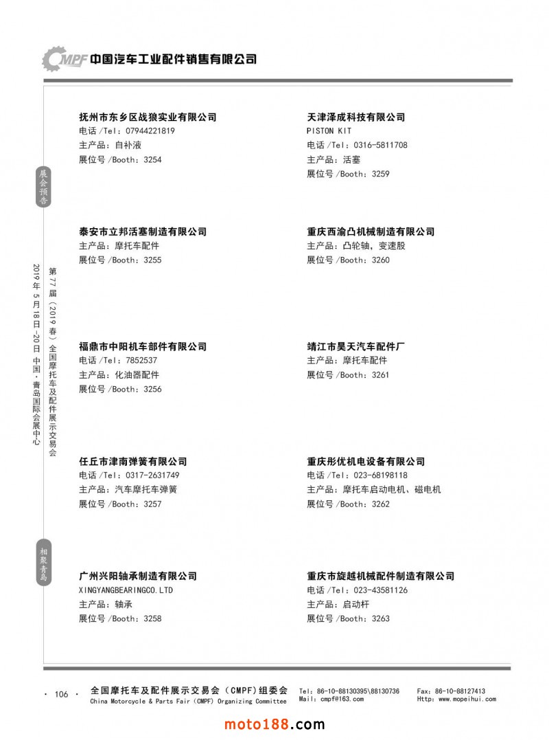 內106 第76屆(2018秋)全國摩托車及配件展示交易會-廣州站參展企業(yè)信息