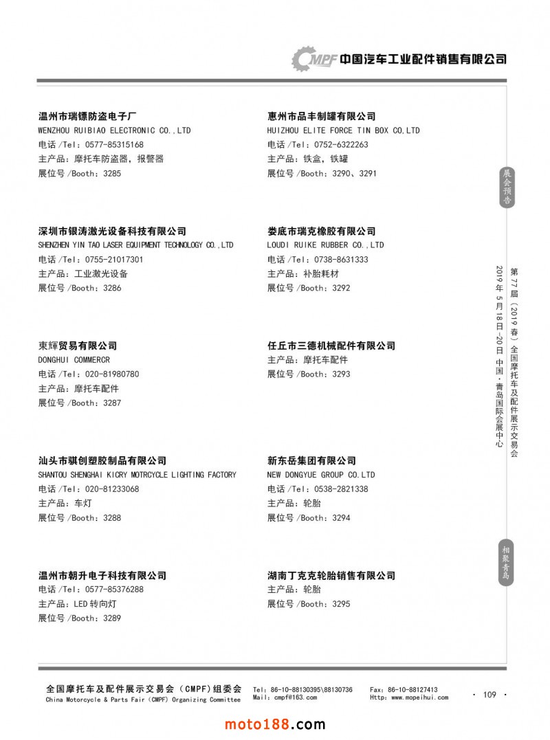 內109 第76屆(2018秋)全國摩托車及配件展示交易會-廣州站參展企業信息