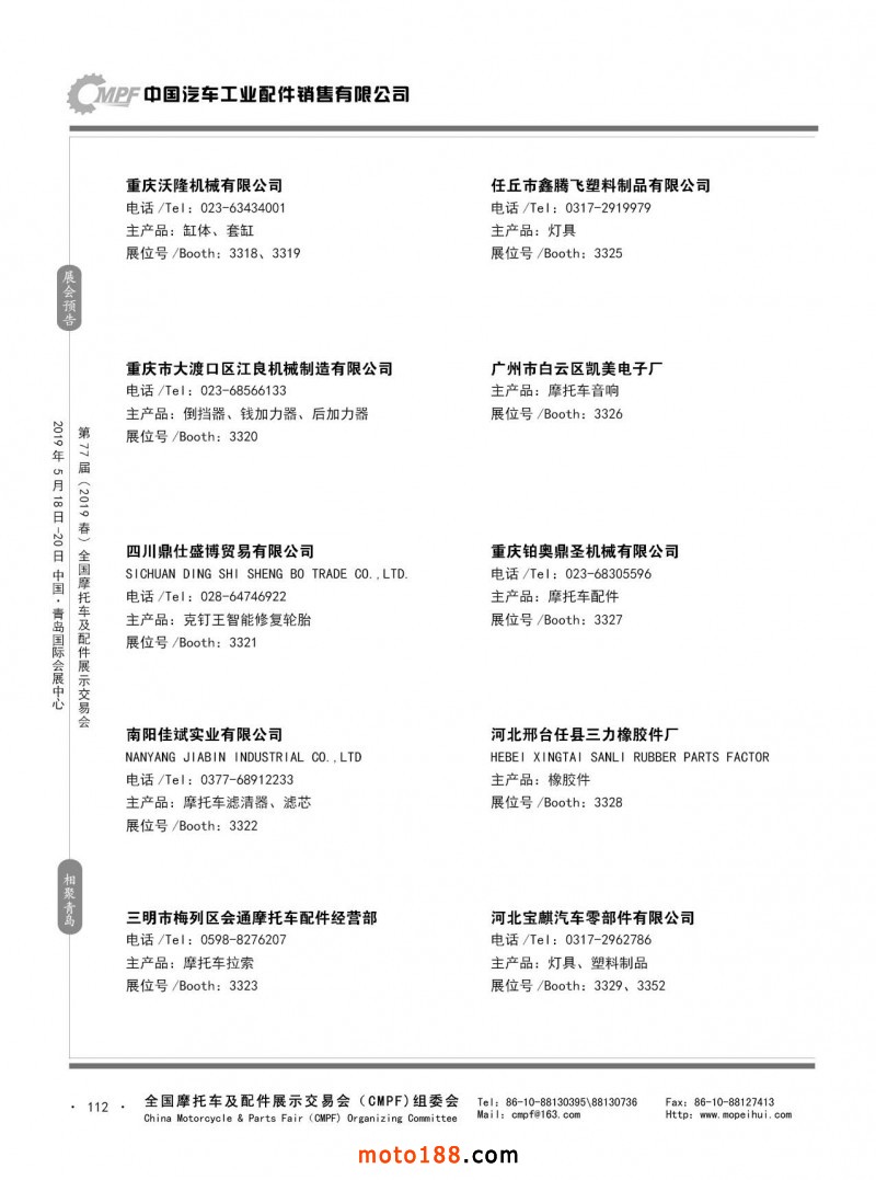 內112 第76屆(2018秋)全國摩托車及配件展示交易會-廣州站參展企業信息