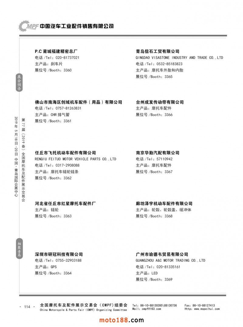 內113 第76屆(2018秋)全國摩托車及配件展示交易會-廣州站參展企業信息