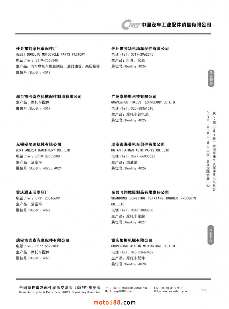 內(nèi)117 第76屆(2018秋)全國摩托車及配件展示交易會-廣州站參展企業(yè)信息