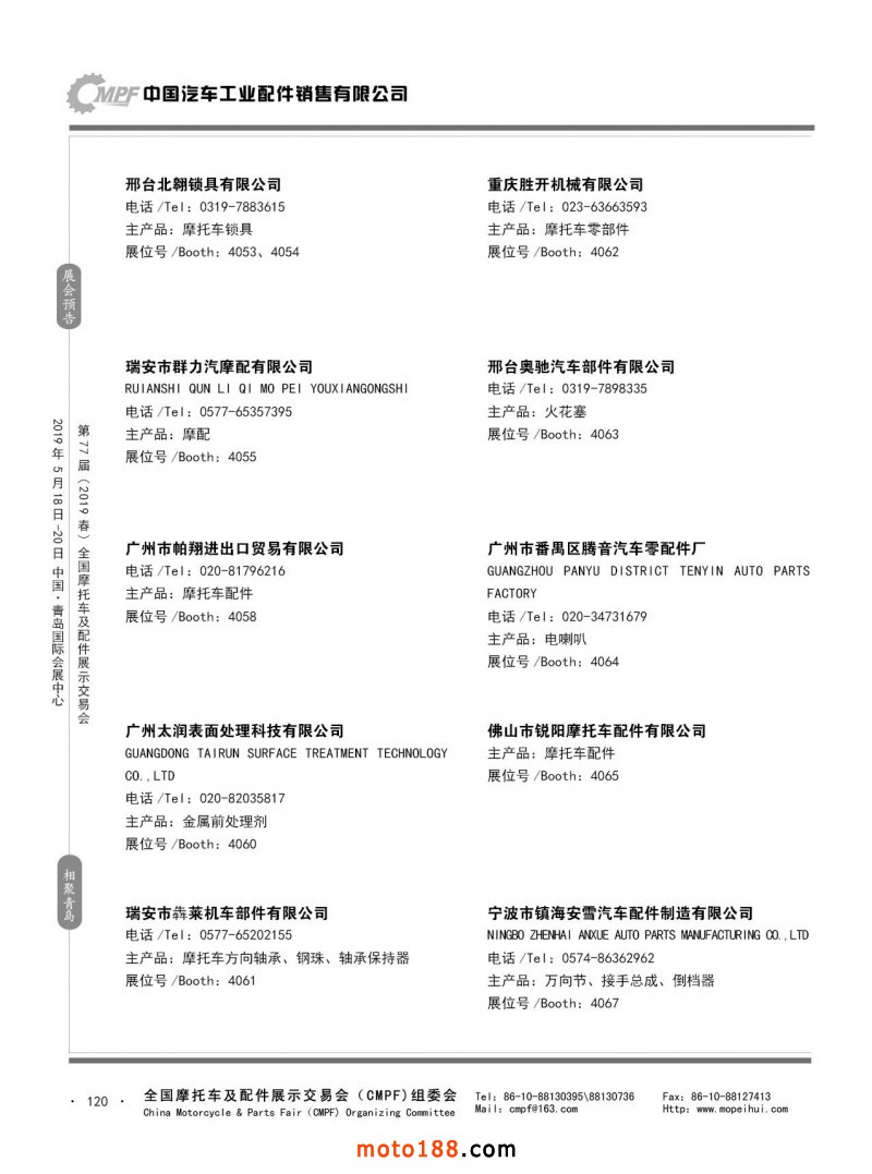 內120 第76屆(2018秋)全國摩托車及配件展示交易會-廣州站參展企業信息