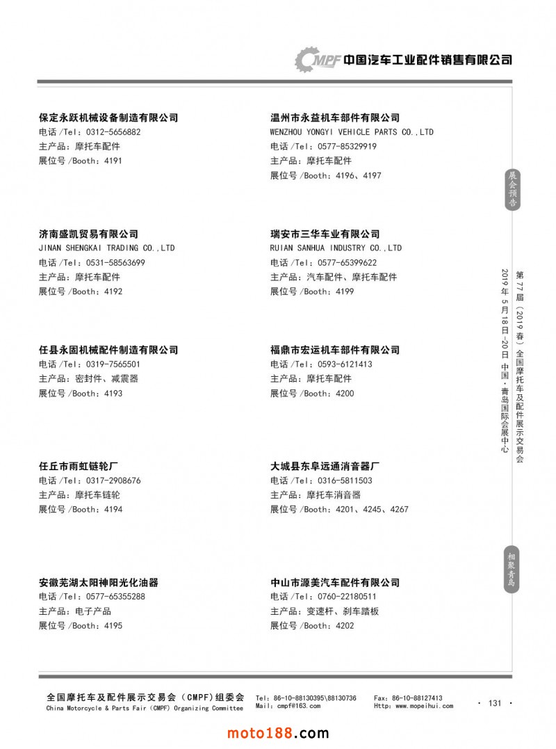 內131 第76屆(2018秋)全國摩托車及配件展示交易會-廣州站參展企業信息