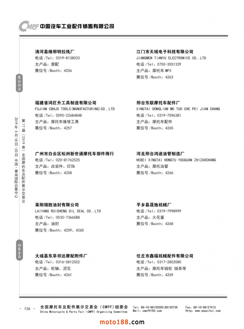 內136 第76屆(2018秋)全國摩托車及配件展示交易會-廣州站參展企業信息