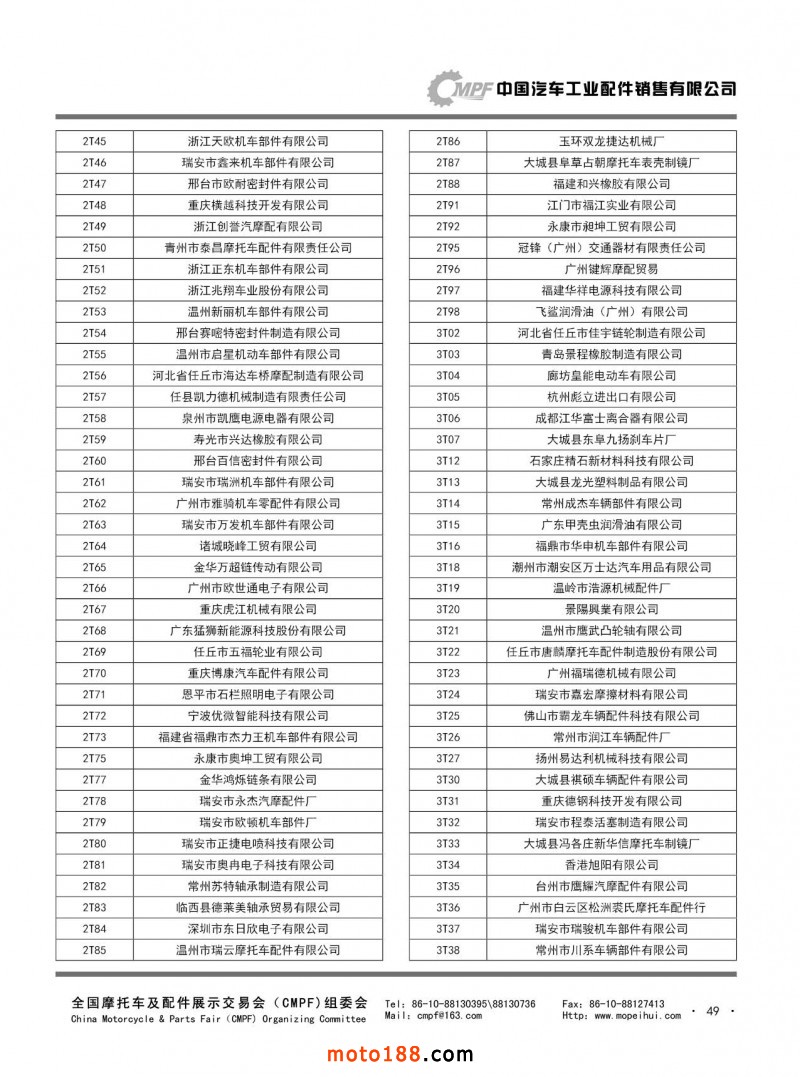 內(nèi)49 第76屆(2018秋)全國摩托車及配件展示交易會-廣州站參展單位名錄第76屆(2018秋)全國摩托車及配件展示交易會-廣州站參展單位名錄