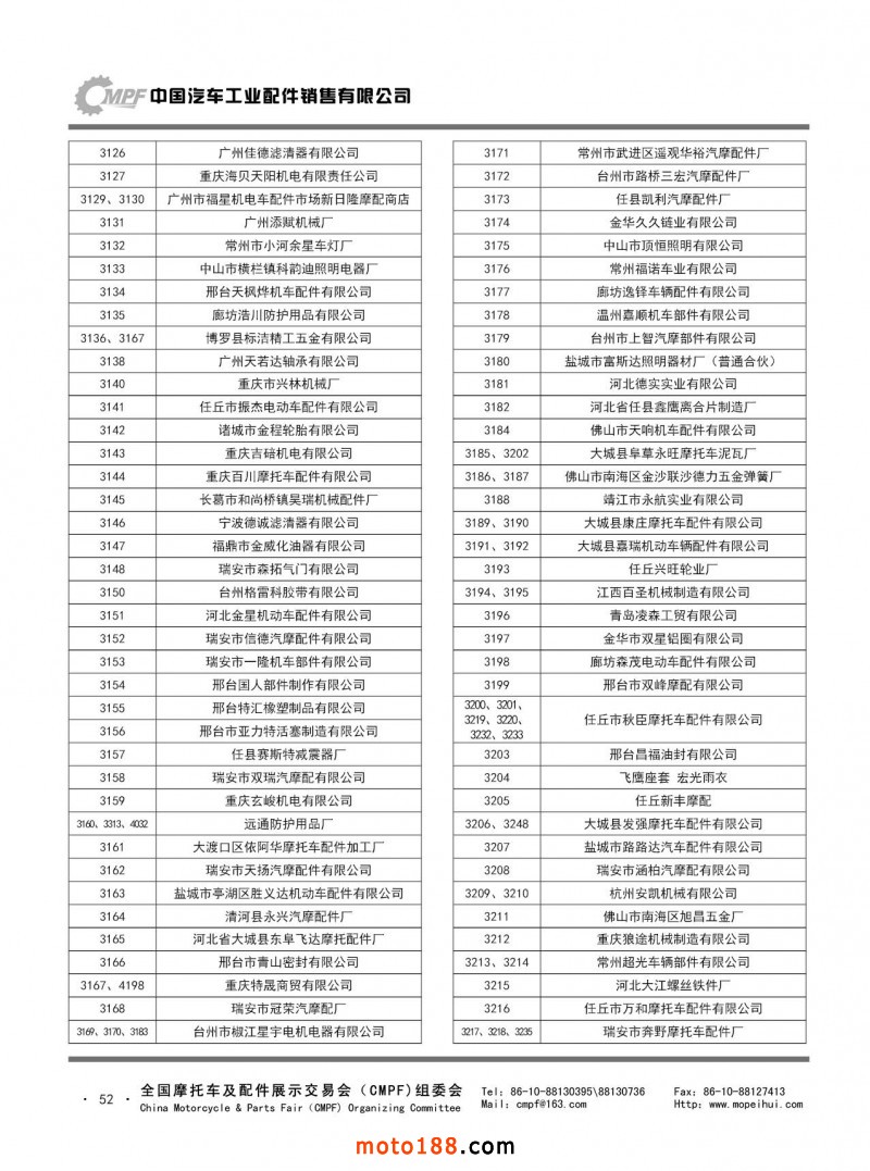 內(nèi)52 第76屆(2018秋)全國(guó)摩托車及配件展示交易會(huì)-廣州站參展單位名錄第76屆(2018秋)全國(guó)摩托車及配件展示交易會(huì)-廣州站參展單位名錄