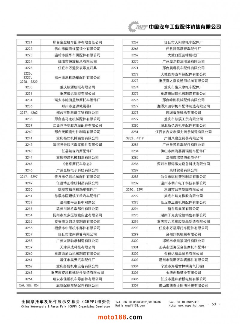 內53 第76屆(2018秋)全國摩托車及配件展示交易會-廣州站參展單位名錄第76屆(2018秋)全國摩托車及配件展示交易會-廣州站參展單位名錄