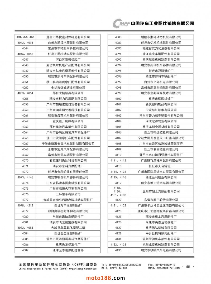 內55 第76屆(2018秋)全國摩托車及配件展示交易會-廣州站參展單位名錄第76屆(2018秋)全國摩托車及配件展示交易會-廣州站參展單位名錄