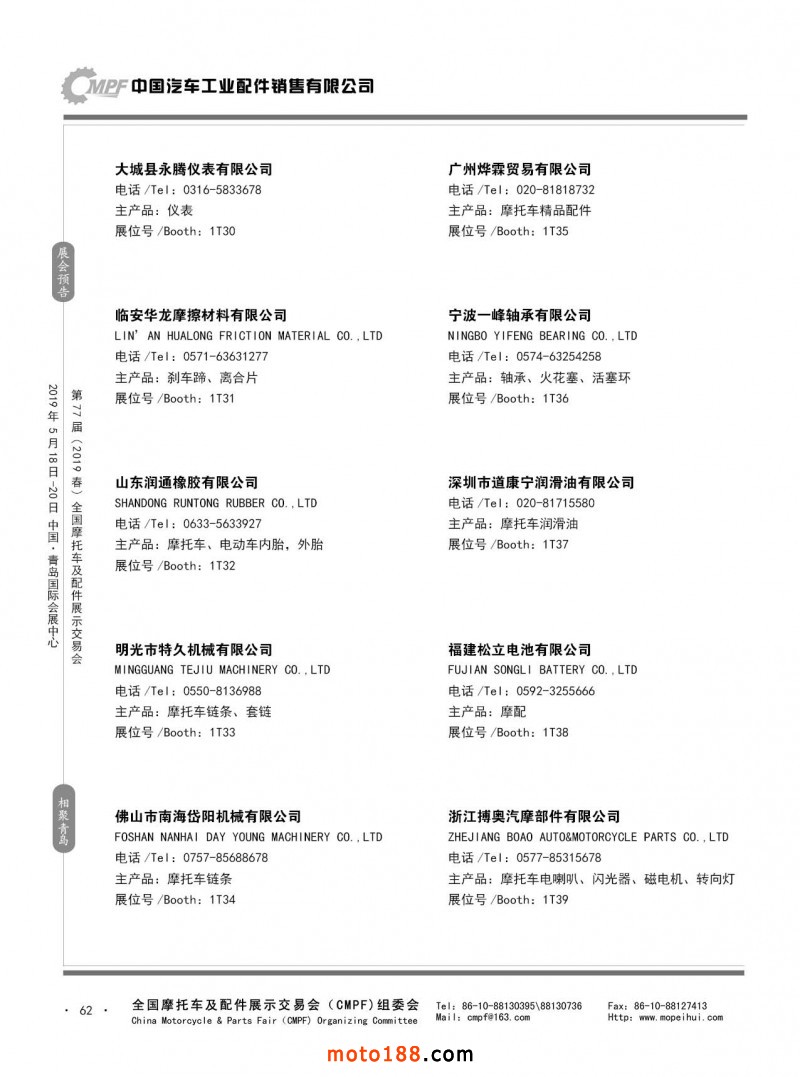 內62 第76屆(2018秋)全國摩托車及配件展示交易會-廣州站參展企業信息
