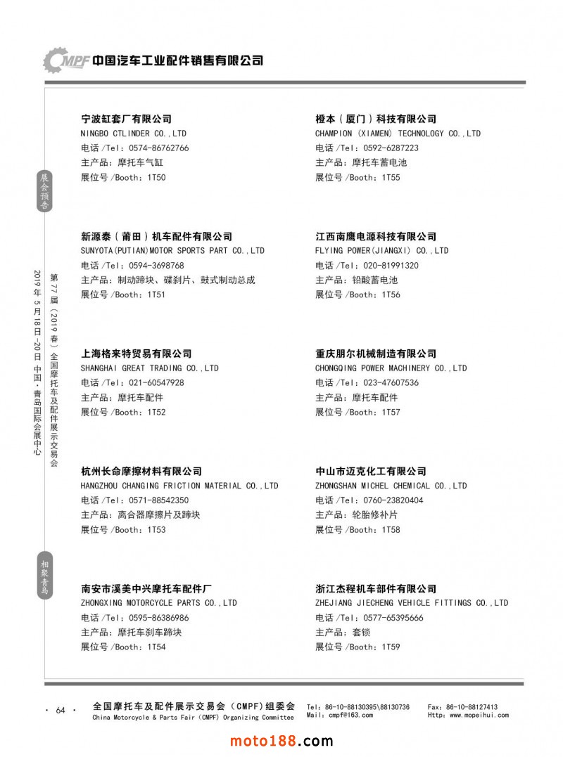 內(nèi)64 第76屆(2018秋)全國摩托車及配件展示交易會(huì)-廣州站參展企業(yè)信息