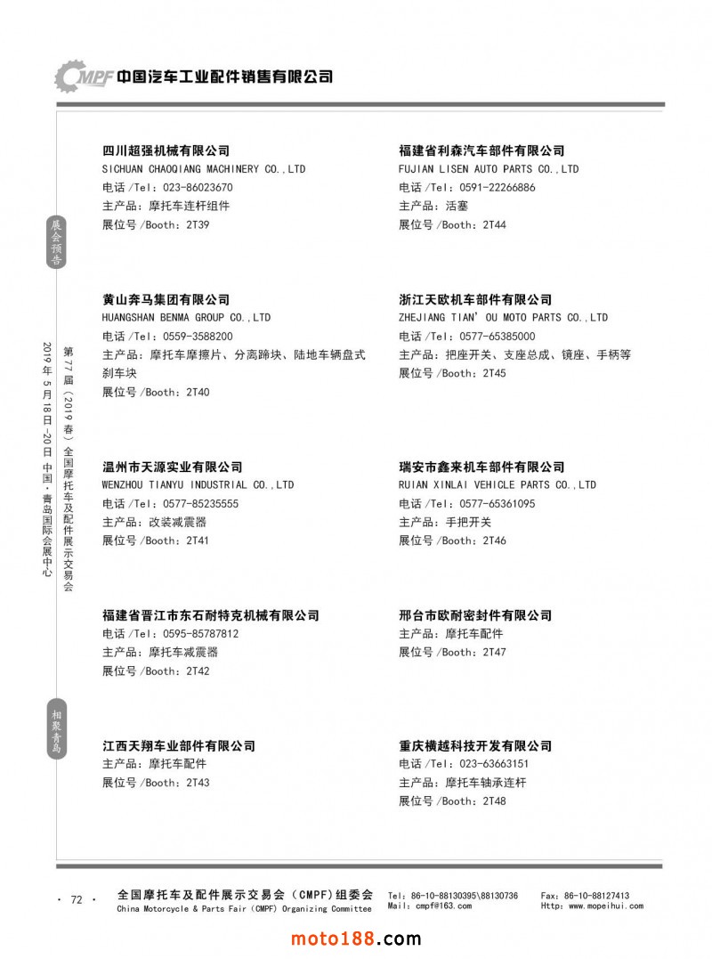 內(nèi)72 第76屆(2018秋)全國摩托車及配件展示交易會-廣州站參展企業(yè)信息