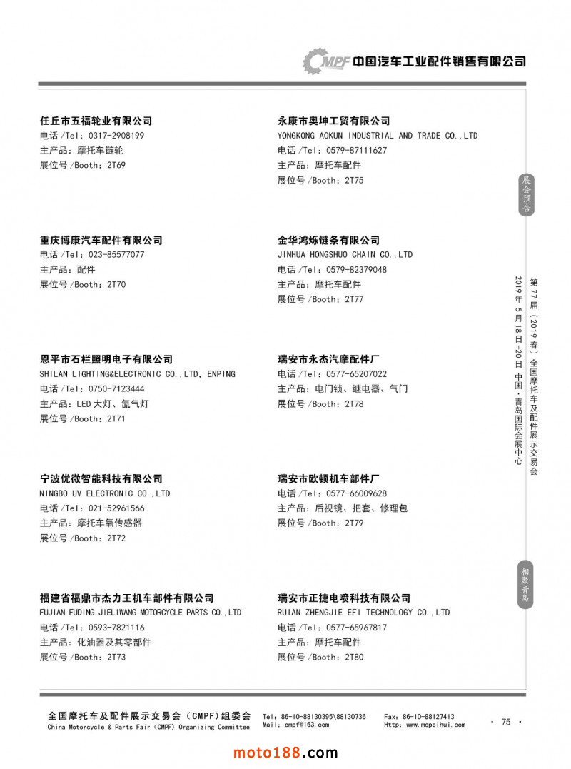 內75 第76屆(2018秋)全國摩托車及配件展示交易會-廣州站參展企業信息