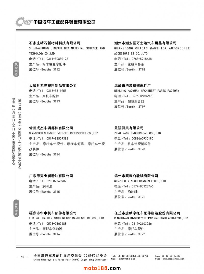 內78 第76屆(2018秋)全國摩托車及配件展示交易會-廣州站參展企業(yè)信息