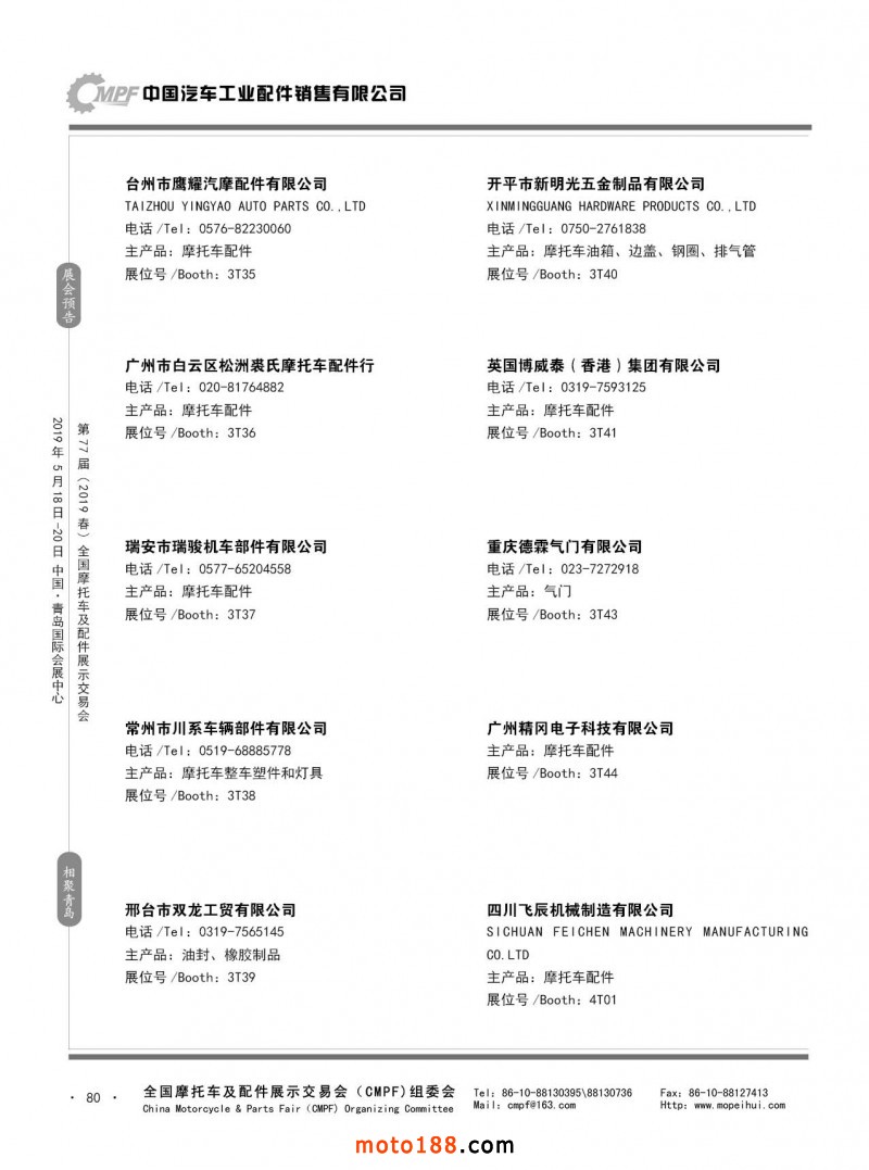 內80 第76屆(2018秋)全國摩托車及配件展示交易會-廣州站參展企業信息