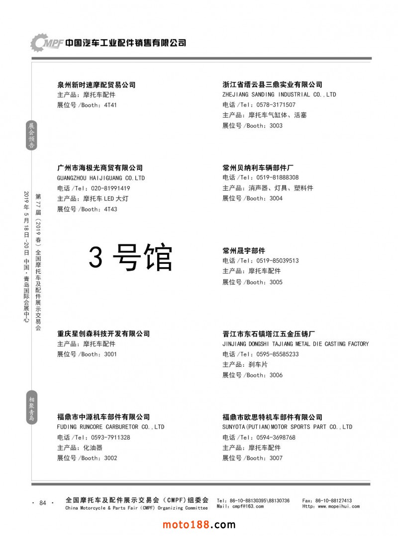 內(nèi)84 第76屆(2018秋)全國(guó)摩托車及配件展示交易會(huì)-廣州站參展企業(yè)信息