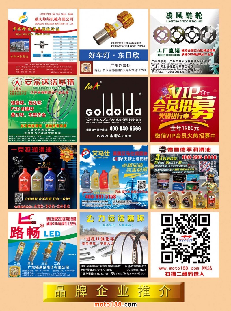 《摩托車與配件》(正在考慮是否變更為《電·摩配件》)不僅服務(wù)于摩配業(yè)之外,將重點(diǎn)增加電動車業(yè)(二、三、四輪)的信息服務(wù);同時增加小型通機(jī)內(nèi)容(涉及工、農(nóng)、林、牧、副、漁、建等產(chǎn)業(yè))信息服務(wù);壓縮出刊期數(shù),適當(dāng)減少廣告的版面,突出雜志的內(nèi)容,增加原創(chuàng)內(nèi)容,增加可閱讀性,使雜志形成一定的風(fēng)格,將雜志辦成典藏版的精品,每期都有收藏價值;改變現(xiàn)有發(fā)行模式,電子版將發(fā)送至每一個好友;紙質(zhì)版實(shí)行精準(zhǔn)投放,有償發(fā)行,直達(dá)目標(biāo)受眾,具體為每個市場的發(fā)行,按我們提供的名單,由發(fā)行代理送雜志上門,我們按數(shù)量直接支付現(xiàn)金作為發(fā)行費(fèi)。權(quán)威性、收藏性、獨(dú)特性、可讀性這是明年雜志必須具備的特點(diǎn)。明年雜志特殊版面的征集工作已經(jīng)開始,壓縮期數(shù)后,特定版面的數(shù)量將減少,先定先得。