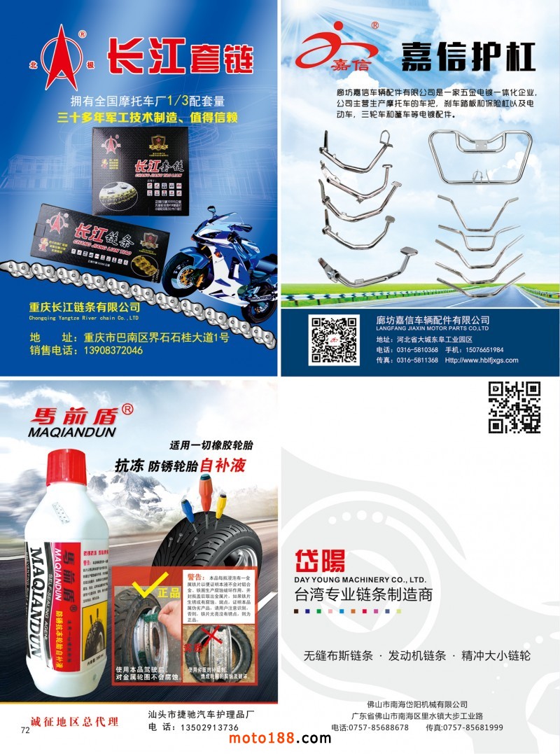 《摩托車與配件》(正在考慮是否變更為《電·摩配件》)不僅服務于摩配業之外,將重點增加電動車業(二、三、四輪)的信息服務;同時增加小型通機內容(涉及工、農、林、牧、副、漁、建等產業)信息服務;壓縮出刊期數,適當減少廣告的版面,突出雜志的內容,增加原創內容,增加可閱讀性,使雜志形成一定的風格,將雜志辦成典藏版的精品,每期都有收藏價值;改變現有發行模式,電子版將發送至每一個好友;紙質版實行精準投放,有償發行,直達目標受眾,具體為每個市場的發行,按我們提供的名單,由發行代理送雜志上門,我們按數量直接支付現金作為發行費。權威性、收藏性、獨特性、可讀性這是明年雜志必須具備的特點。明年雜志特殊版面的征集工作已經開始,壓縮期數后,特定版面的數量將減少,先定先得。