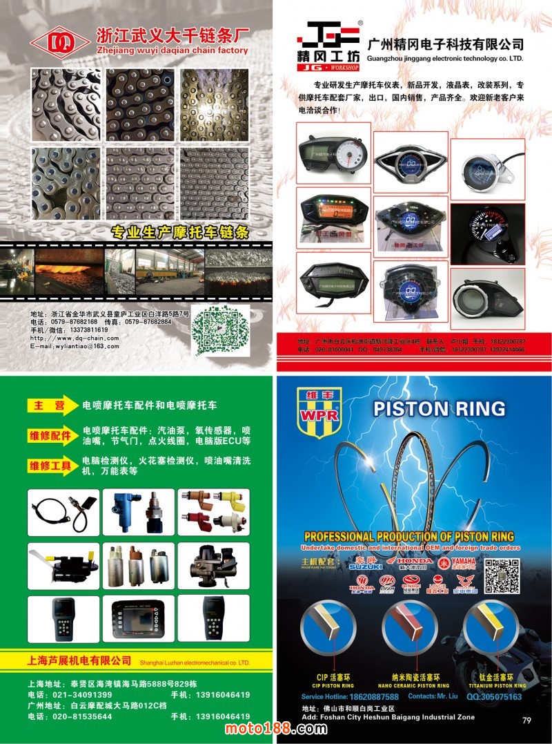 《摩托車與配件》(正在考慮是否變更為《電·摩配件》)不僅服務于摩配業之外,將重點增加電動車業(二、三、四輪)的信息服務;同時增加小型通機內容(涉及工、農、林、牧、副、漁、建等產業)信息服務;壓縮出刊期數,適當減少廣告的版面,突出雜志的內容,增加原創內容,增加可閱讀性,使雜志形成一定的風格,將雜志辦成典藏版的精品,每期都有收藏價值;改變現有發行模式,電子版將發送至每一個好友;紙質版實行精準投放,有償發行,直達目標受眾,具體為每個市場的發行,按我們提供的名單,由發行代理送雜志上門,我們按數量直接支付現金作為發行費。權威性、收藏性、獨特性、可讀性這是明年雜志必須具備的特點。明年雜志特殊版面的征集工作已經開始,壓縮期數后,特定版面的數量將減少,先定先得。