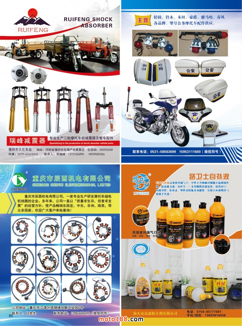 《摩托車與配件》(正在考慮是否變更為《電·摩配件》)不僅服務于摩配業之外,將重點增加電動車業(二、三、四輪)的信息服務;同時增加小型通機內容(涉及工、農、林、牧、副、漁、建等產業)信息服務;壓縮出刊期數,適當減少廣告的版面,突出雜志的內容,增加原創內容,增加可閱讀性,使雜志形成一定的風格,將雜志辦成典藏版的精品,每期都有收藏價值;改變現有發行模式,電子版將發送至每一個好友;紙質版實行精準投放,有償發行,直達目標受眾,具體為每個市場的發行,按我們提供的名單,由發行代理送雜志上門,我們按數量直接支付現金作為發行費。權威性、收藏性、獨特性、可讀性這是明年雜志必須具備的特點。明年雜志特殊版面的征集工作已經開始,壓縮期數后,特定版面的數量將減少,先定先得。