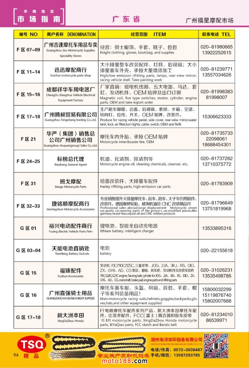 最新升級(jí)的《摩配華南市場(chǎng)指南》升級(jí)版在第76屆廣州全國(guó)摩托車(chē)及配件展示交易會(huì)上首發(fā),歡迎朋友們來(lái)3109號(hào)展位。接著將在廣州、重慶摩配市場(chǎng)全面派送,在廣州福星、松南市場(chǎng)門(mén)口、及白云三個(gè)檔口常年設(shè)立發(fā)行窗口;發(fā)行至廣州、重慶、江浙的幾大板塊主要廠家及全國(guó)的主要摩配市場(chǎng)。