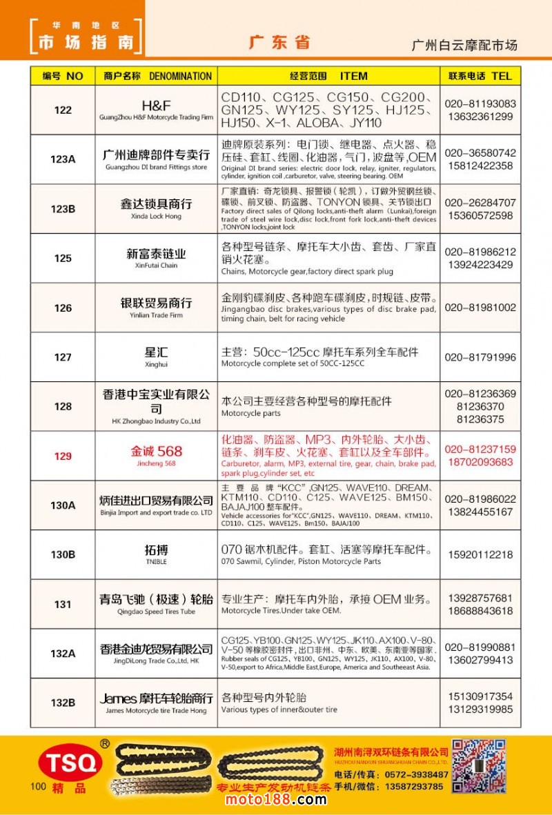 最新升級的《摩配華南市場指南》升級版在第76屆廣州全國摩托車及配件展示交易會上首發,歡迎朋友們來3109號展位。接著將在廣州、重慶摩配市場全面派送,在廣州福星、松南市場門口、及白云三個檔口常年設立發行窗口;發行至廣州、重慶、江浙的幾大板塊主要廠家及全國的主要摩配市場。