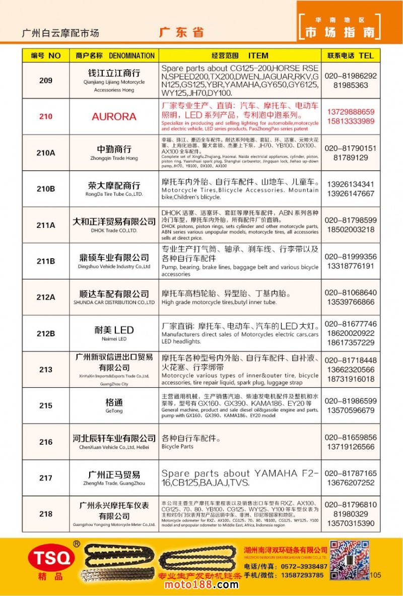 最新升級的《摩配華南市場指南》升級版在第76屆廣州全國摩托車及配件展示交易會上首發(fā),歡迎朋友們來3109號展位。接著將在廣州、重慶摩配市場全面派送,在廣州福星、松南市場門口、及白云三個檔口常年設(shè)立發(fā)行窗口;發(fā)行至廣州、重慶、江浙的幾大板塊主要廠家及全國的主要摩配市場。