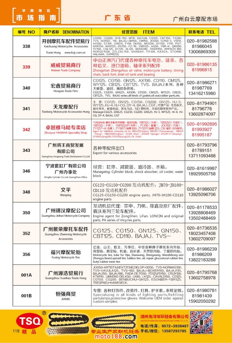 最新升級的《摩配華南市場指南》升級版在第76屆廣州全國摩托車及配件展示交易會上首發,歡迎朋友們來3109號展位。接著將在廣州、重慶摩配市場全面派送,在廣州福星、松南市場門口、及白云三個檔口常年設立發行窗口;發行至廣州、重慶、江浙的幾大板塊主要廠家及全國的主要摩配市場。