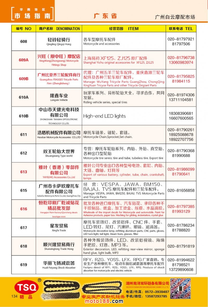 最新升級的《摩配華南市場指南》升級版在第76屆廣州全國摩托車及配件展示交易會上首發(fā),歡迎朋友們來3109號展位。接著將在廣州、重慶摩配市場全面派送,在廣州福星、松南市場門口、及白云三個檔口常年設(shè)立發(fā)行窗口;發(fā)行至廣州、重慶、江浙的幾大板塊主要廠家及全國的主要摩配市場。