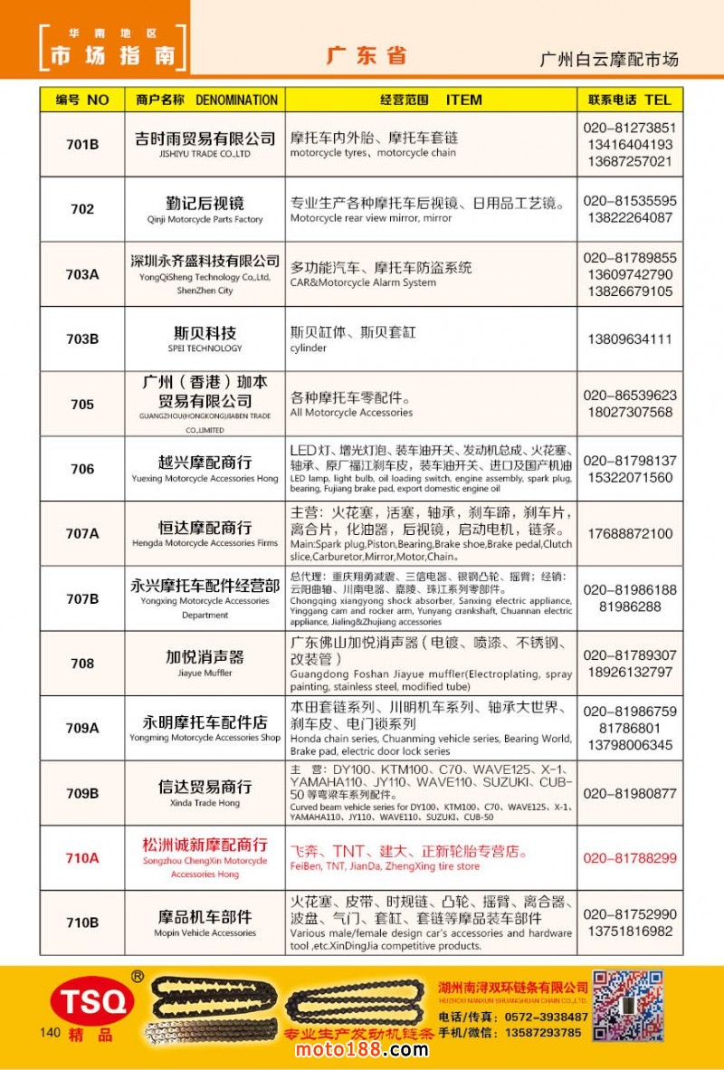 最新升級的《摩配華南市場指南》升級版在第76屆廣州全國摩托車及配件展示交易會上首發,歡迎朋友們來3109號展位。接著將在廣州、重慶摩配市場全面派送,在廣州福星、松南市場門口、及白云三個檔口常年設立發行窗口;發行至廣州、重慶、江浙的幾大板塊主要廠家及全國的主要摩配市場。