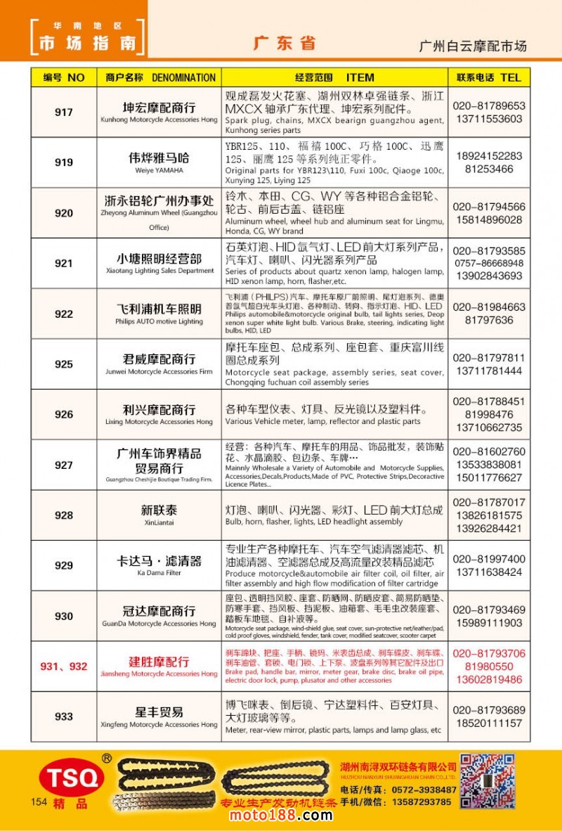 最新升級的《摩配華南市場指南》升級版在第76屆廣州全國摩托車及配件展示交易會上首發,歡迎朋友們來3109號展位。接著將在廣州、重慶摩配市場全面派送,在廣州福星、松南市場門口、及白云三個檔口常年設立發行窗口;發行至廣州、重慶、江浙的幾大板塊主要廠家及全國的主要摩配市場。