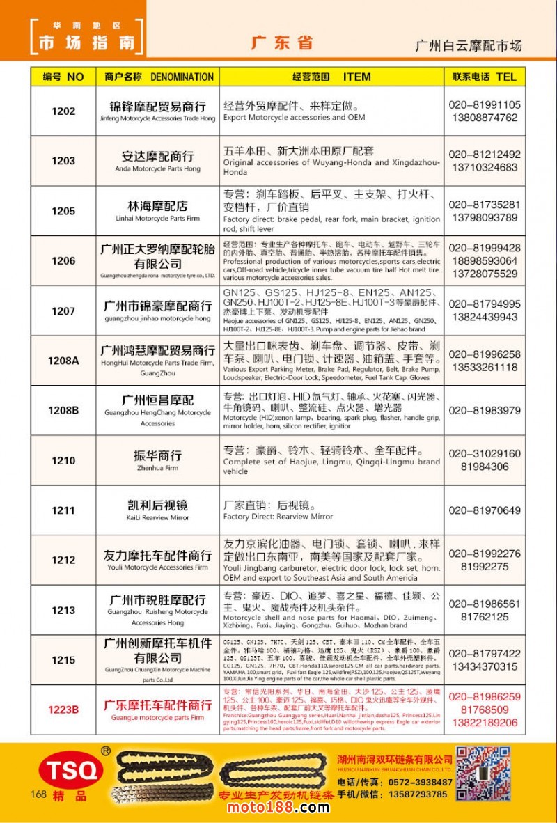 最新升級的《摩配華南市場指南》升級版在第76屆廣州全國摩托車及配件展示交易會上首發,歡迎朋友們來3109號展位。接著將在廣州、重慶摩配市場全面派送,在廣州福星、松南市場門口、及白云三個檔口常年設立發行窗口;發行至廣州、重慶、江浙的幾大板塊主要廠家及全國的主要摩配市場。