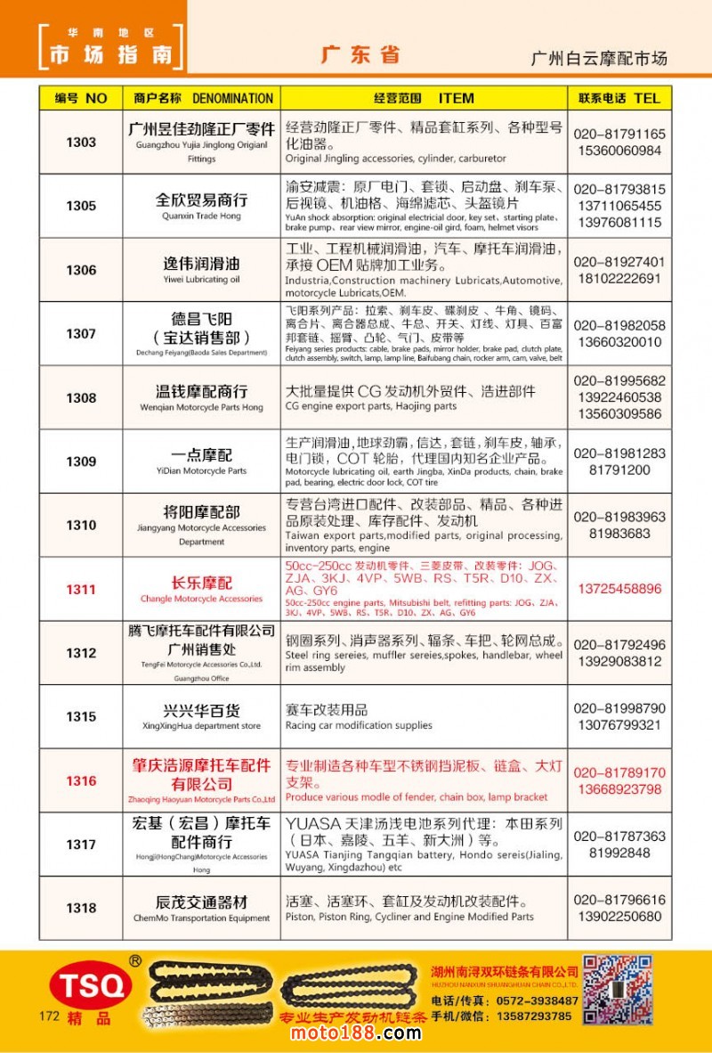 最新升級(jí)的《摩配華南市場指南》升級(jí)版在第76屆廣州全國摩托車及配件展示交易會(huì)上首發(fā),歡迎朋友們來3109號(hào)展位。接著將在廣州、重慶摩配市場全面派送,在廣州福星、松南市場門口、及白云三個(gè)檔口常年設(shè)立發(fā)行窗口;發(fā)行至廣州、重慶、江浙的幾大板塊主要廠家及全國的主要摩配市場。