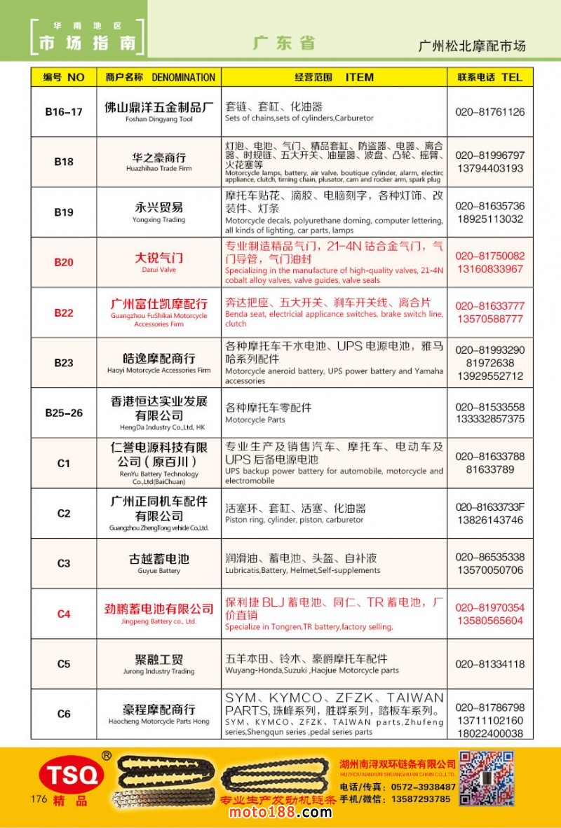 最新升級的《摩配華南市場指南》升級版在第76屆廣州全國摩托車及配件展示交易會上首發(fā),歡迎朋友們來3109號展位。接著將在廣州、重慶摩配市場全面派送,在廣州福星、松南市場門口、及白云三個檔口常年設(shè)立發(fā)行窗口;發(fā)行至廣州、重慶、江浙的幾大板塊主要廠家及全國的主要摩配市場。