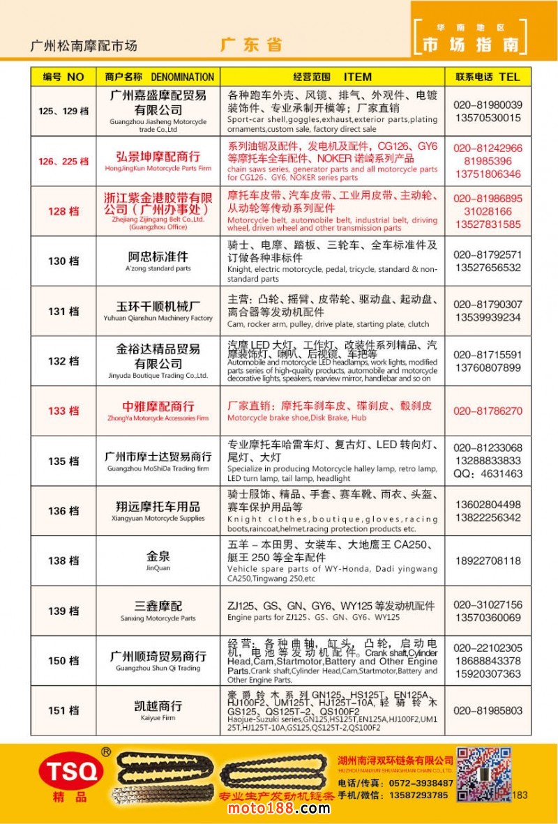 最新升級的《摩配華南市場指南》升級版在第76屆廣州全國摩托車及配件展示交易會上首發,歡迎朋友們來3109號展位。接著將在廣州、重慶摩配市場全面派送,在廣州福星、松南市場門口、及白云三個檔口常年設立發行窗口;發行至廣州、重慶、江浙的幾大板塊主要廠家及全國的主要摩配市場。