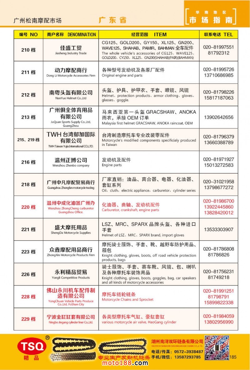 最新升級的《摩配華南市場指南》升級版在第76屆廣州全國摩托車及配件展示交易會上首發(fā),歡迎朋友們來3109號展位。接著將在廣州、重慶摩配市場全面派送,在廣州福星、松南市場門口、及白云三個檔口常年設(shè)立發(fā)行窗口;發(fā)行至廣州、重慶、江浙的幾大板塊主要廠家及全國的主要摩配市場。